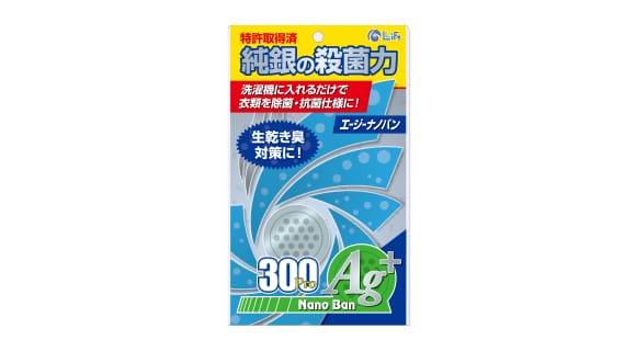 エージ―ナノバンは「エージー(Ag/銀)ナノ粒子が番をする(見守る)」が名称の由来で商標登録済です。エージーナノバンシリーズは入れるだけで簡単に除菌・抗菌効果を生み出す商品です。抗菌成分は99.99%の純銀です。
