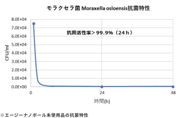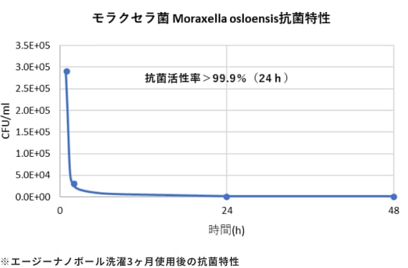 以下に代表的な細菌に対する評価試験データ(試験方法ASTM E2149-20)を参考に示します。