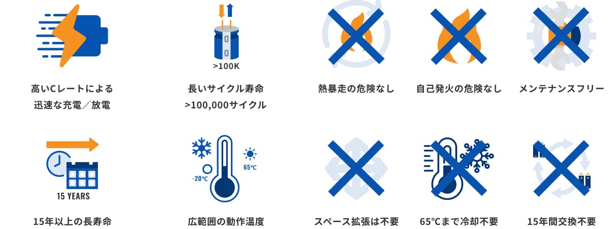 これはリチウムイオン電池規制の対象外となる大容量キャパシタベースのエネルギー貯蔵システムです。