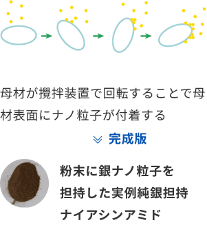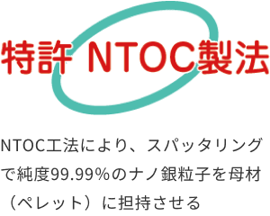 当社の特許技術であるNTOC工法を活用することで、高純度かつ高効果のナノ銀を粉末、固形、液体といったさまざまな形状で製造して商品化することが可能になりました。